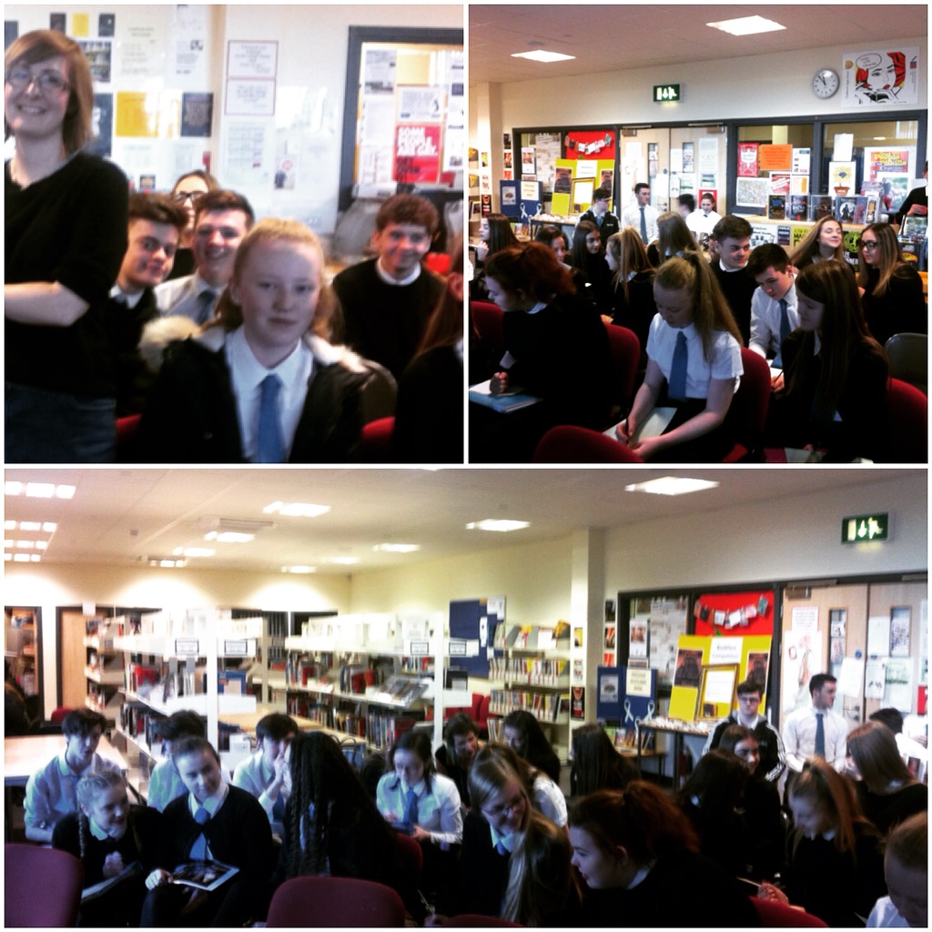 The day after, I visited Largs Academy and spoke to a very enthusiastic group of 1st (and 3rd) years. I love this photo taken by the librarian as it captures the fun energy and enthusiasm the pupils demonstrated throughout my talk. They asked me lots of questions and I was delighted when so many of them came up to tell me all about the stories and books they have been writing. And they tackled the flash fiction task I set them with no hesitation. A brilliant event!