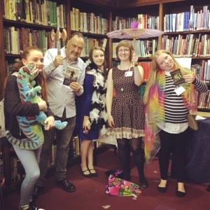 The last couple of months have been busy for me. I moved to a new office in my day job, after a year in a promoted post, in August. In August I also had a fun day out in Edinburgh with fabulous authors such as Kirkland Ciccone, Alex Nye and Roy Gill. We got to spend some time in the Author Yurt at the Edinburgh Book Festival, (thanks to Kirkland’s VIP pass), where we drank lots of tea and ate lots of crisps (authors live really glamorous lives you know). I had to get a photo beside my books in the Festival shop, before then heading off to the fabulous ‘Teen Titles’ party at Central library. Below is a snapshot of my interview in the Teen Titles magazine, alongside a photo of me at the party!
