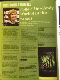 I was interviewed last year by pupils Alison and Freya when I visited their school, Portobello High. I was delighted by their reviews of ‘Follow Me’ in the magazine, particularly as Freya found it, ‘scary, gripping and dark.’