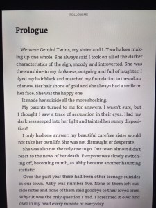 A couple of things sparked off the ideas for Follow Me. After reading a lot about the Pop Artist Andy Warhol, and his infamous artist studio, The Factory, I began to think how appealing an underground creative hangout might be for teenagers in a town where not a lot is happening – this fed into the creation of The Barn within my book. Newspaper stories from years ago had stayed in my head, about a large number of teenage suicides in a small town and the writer in me kept thinking, What if something more sinister was happening there and no one bothered to figure it out? That’s what sparked off the idea for the mystery element in my book; my protagonist, Kat, is trying to figure out what has really happened to her twin, Abby, refusing to believe she would take her own life.