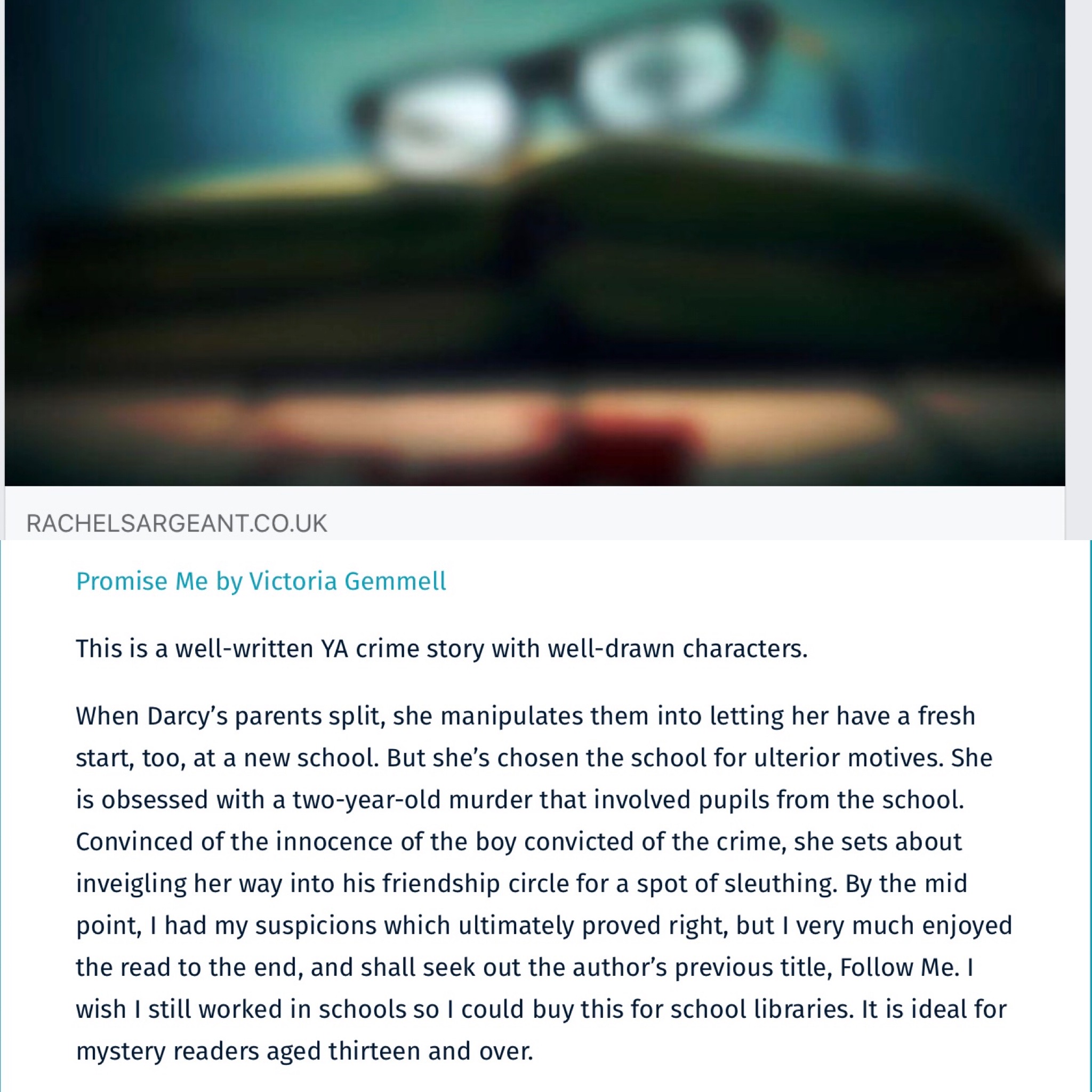 Last month I was also delighted to be tagged in a great review for Promise Me. I’ve put an image of this below but it is worth visitng Rachel Sargeant’s site for other great thriller reviews here. Rachel’s thrillers are now on my TBR pile!
