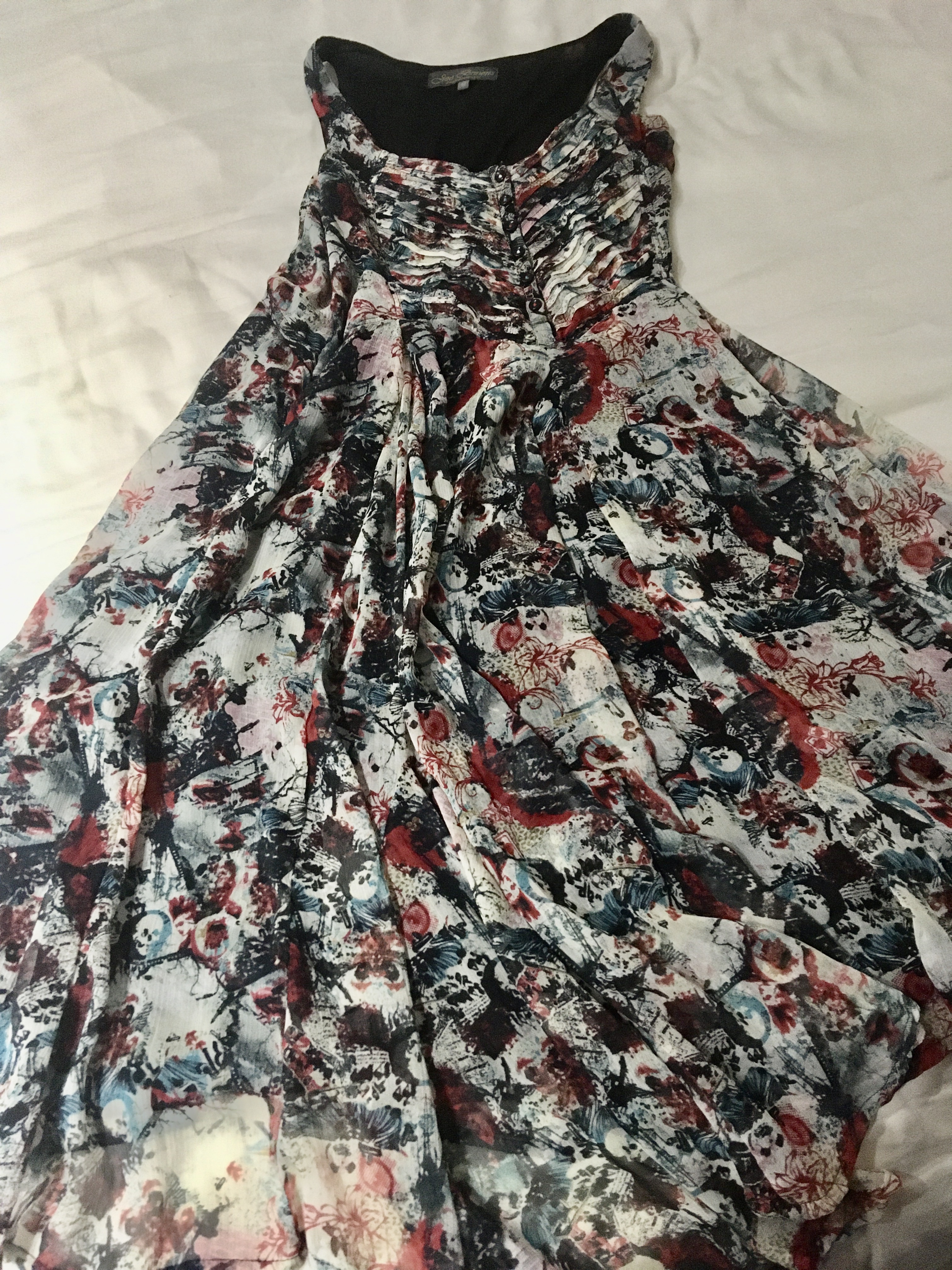 I’ve chosen the above dress, and it’s not memories per se that have prompted me to choose this outfit (though the ones below are good ones). It’s the dress itself I feel attached to and even although I can no longer fit into it I can’t bring myself to put it out to the charity shop as I love it so much. I bought it from the Joe Browns website back in 2011 I reckon, and I love the ‘graffiti’ style of it and the detail of the skulls and playing cards and random other squiggles.