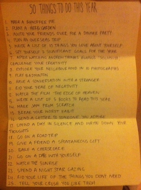 That year the Art House Co-op launched a ‘Sunday swap’ project, asking for participants to compose a list of 50 tasks for a stranger to complete. I posted my list to the company and they then mailed it out to someone, somewhere, and I then received my 50 things from a stranger, in return. I’ve put a photograph of some of my tasks above.